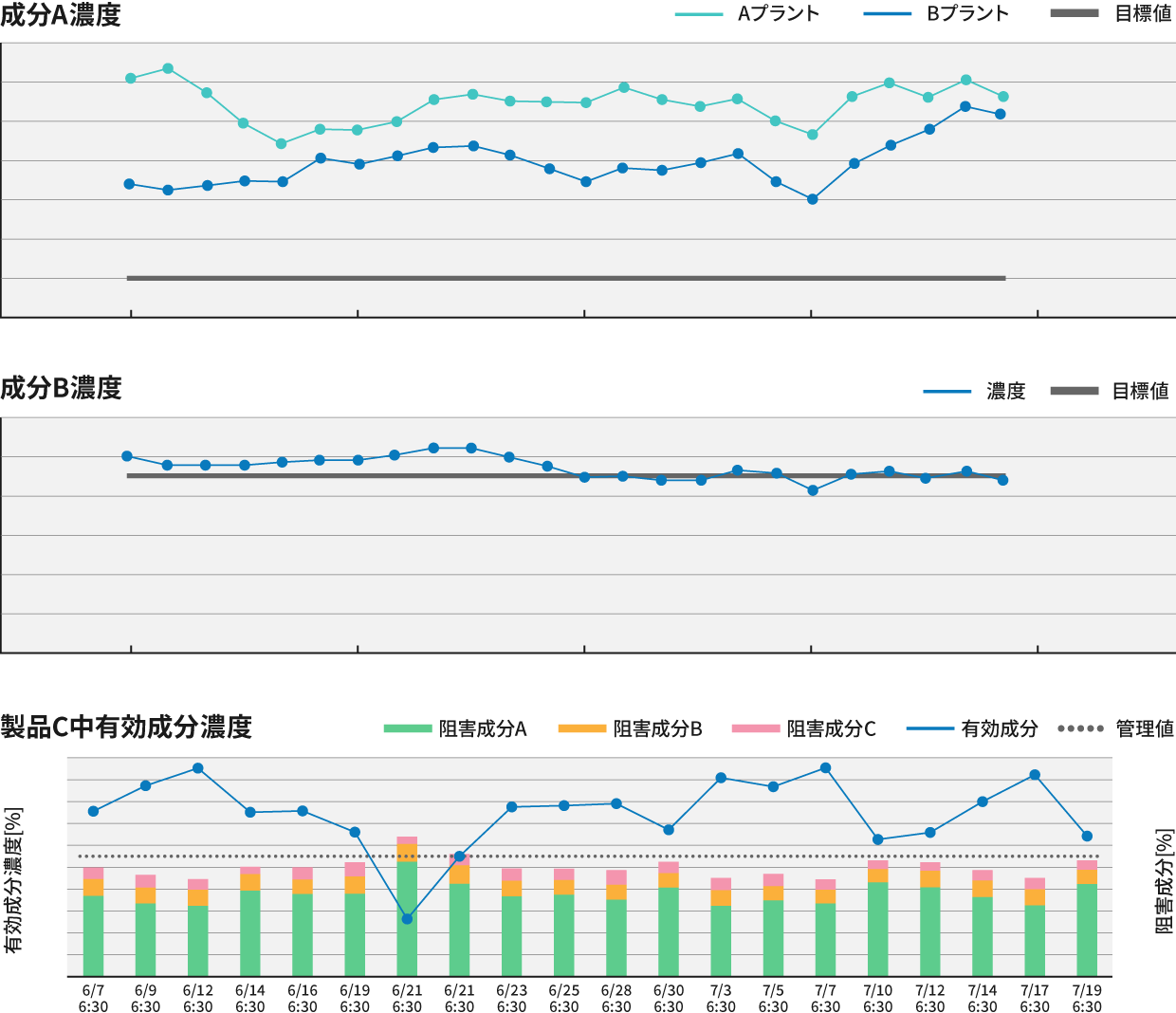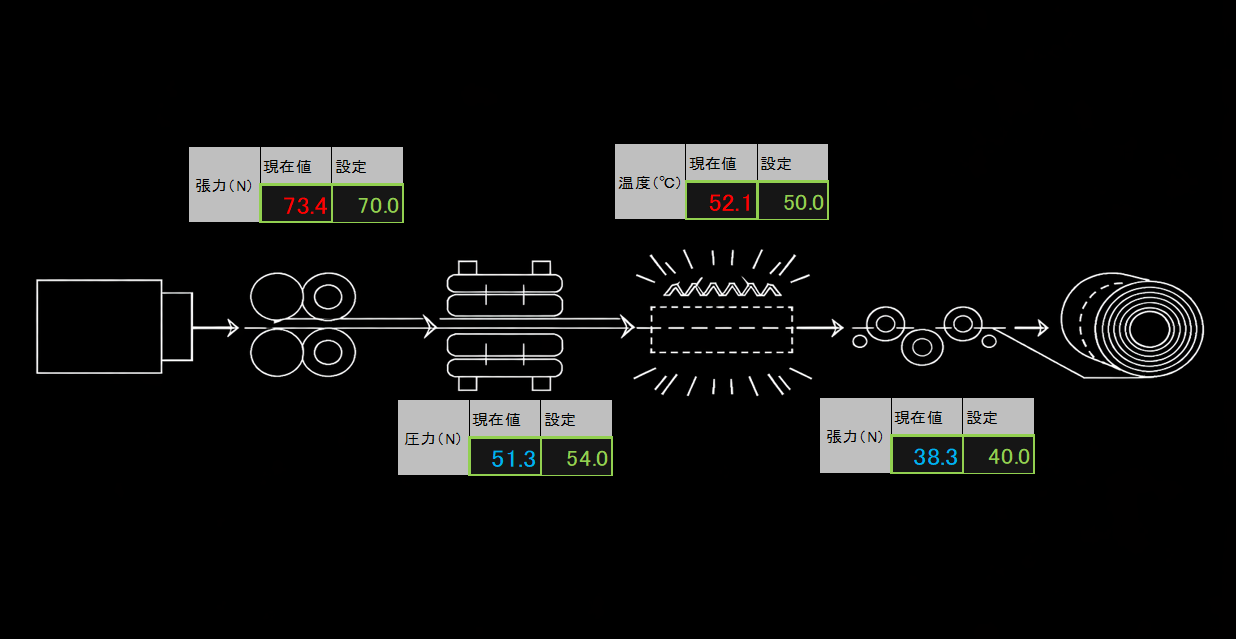 | 業務効率化支援 | 工場全体の一元監視による、状況把握の効率化 計画実績比較の自動化による、工数削減 品質の長期トレンド表示による、異常の早期検知 |