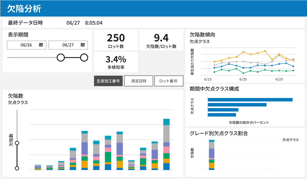 品質異常データと、異常の要因になりうるデータを自動収集し一覧表示。ユーザごとに、対象期間や、特定の異常に関するデータを絞り込んで表示することで、多面的な分析が高速で可能に。