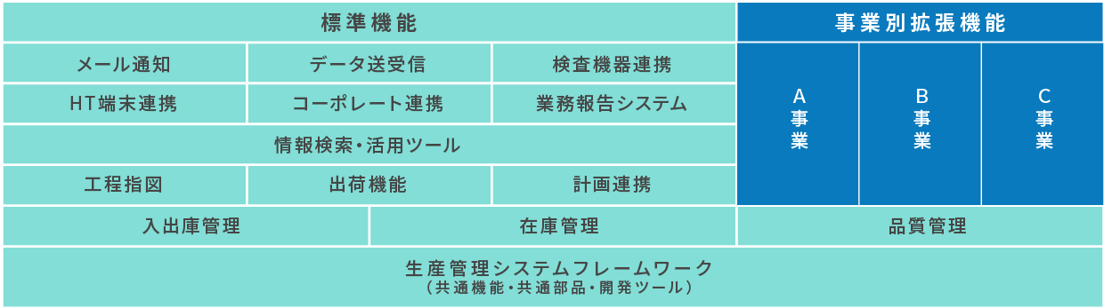 事業固有に必要な機能は、同一基板上に拡張機能として構築可能です。